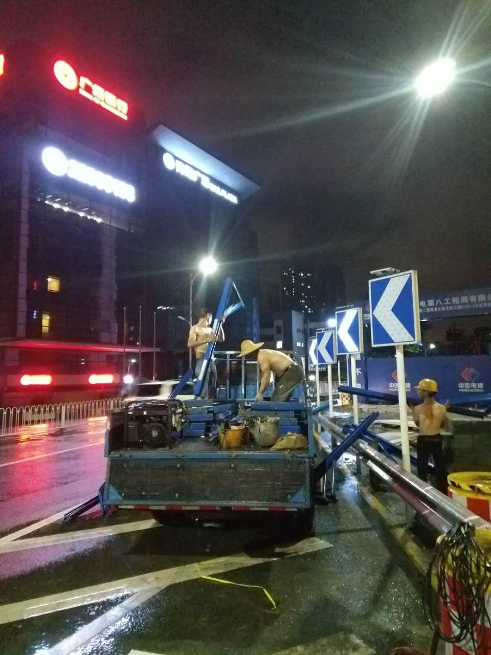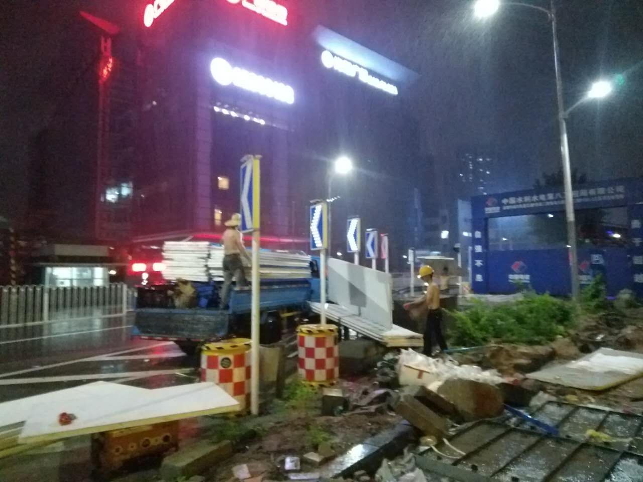 2017年6月13日夜,臺風"苗柏"來襲前夕,為民降低臺風帶來的危害,深圳市旭東鋼構技術開發有限公司迅速組織人員車輛,在深圳地鐵九號線延長線南海大道段拆除并轉移活動圍墻500米。