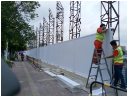 優質的施工圍擋廠家,例如深圳市旭東鋼構技術開發有限公司(www.ngxpv.cn),深圳外環高速公路的沙井段,就是中鐵十二局合作與其合作,選用的他們家生產的彩鋼泡沫板圍擋、PVC圍擋、鋼結構C款圍擋以及鋼結構B款圍擋進行道路施工,而在公明段,則是中交二建與其合作,主要選用的他們家的以鋼結構A款為主的圍擋。