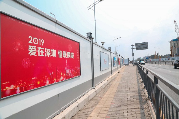 6、安裝好圍擋,就可安排下空的50厘米以上的空間,可以用來做砌磚基礎(chǔ),增強穩(wěn)定性、牢固性。由于工程圍擋厚度、顏色美觀度能適應(yīng)各類客戶,使用時,可以在圍欄上設(shè)置施工公告,或者通過招標(biāo)引入廣告公司設(shè)置公益廣告和商業(yè)廣告,充分利用和提高空間價值。